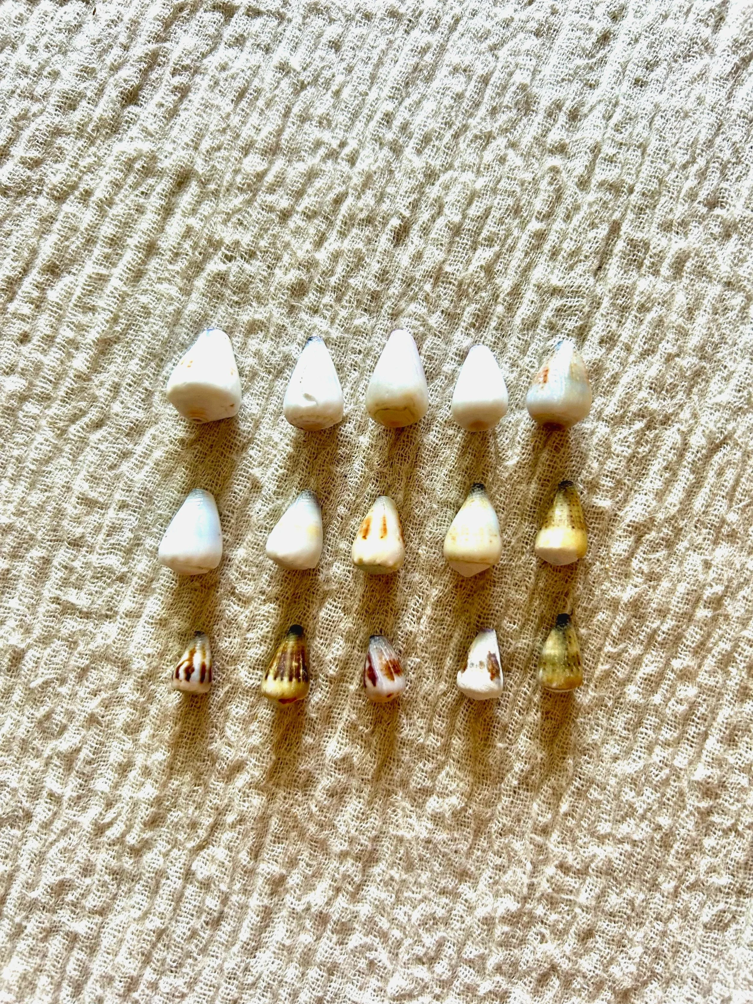At Salt & Water Co., we never keep shells with living creatures inside. When handling cone shells in the ocean, always pick them up from the back end first to check if they are occupied. Full shells are returned to their habitat, and any unused shells or beach treasures are also returned, reflecting our commitment to ethical and sustainable practices. All shells are handpicked with care by me on O’ahu.