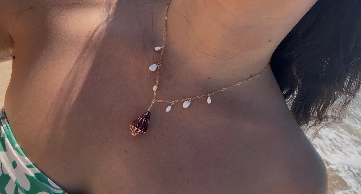 Our Kailani Necklace is back! Our popular style featuring a cross charm, freshwater pearls, and mixed shells.
