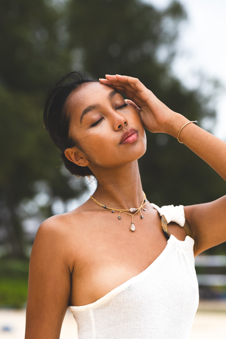 Siren Necklace (Sunrise Shell & Tahitian Keshi Pearls)